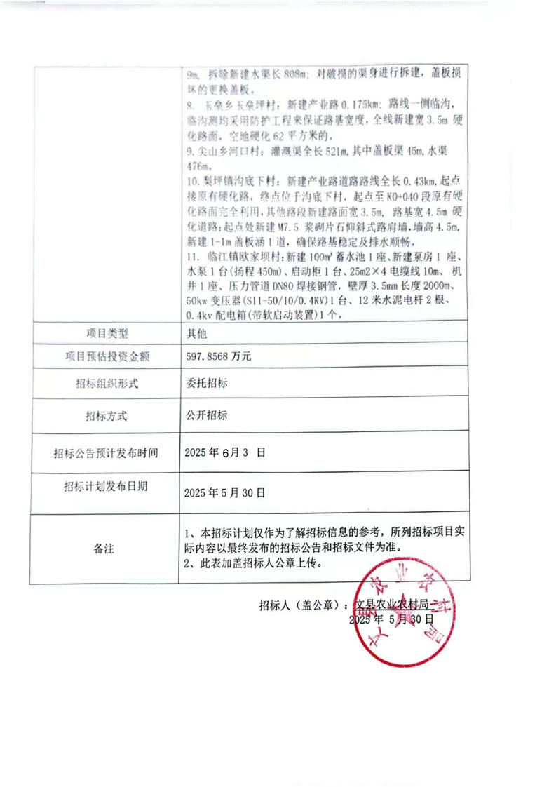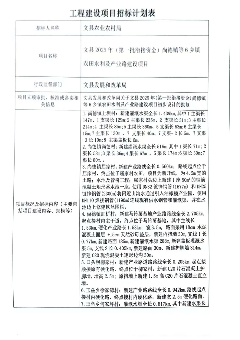 文縣2025年(第一批銜接資金)尚德鎮等6鄉鎮農田水利及產業路建設項目