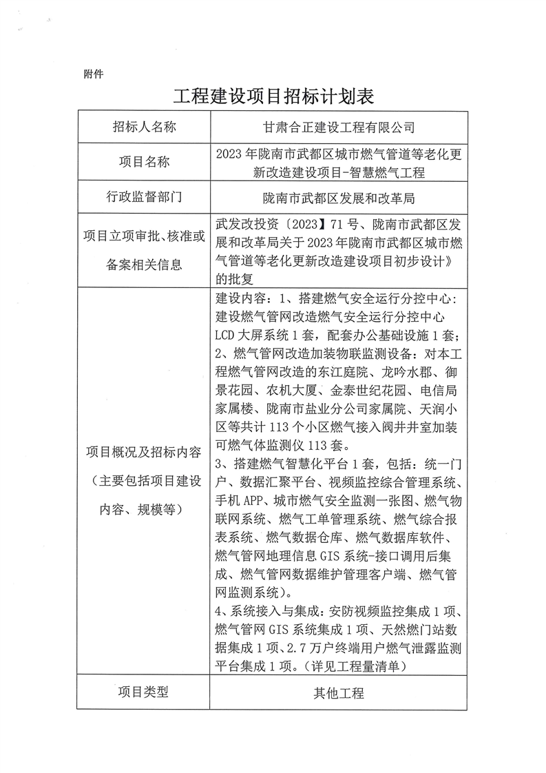 2023年隴南市武都區城市燃氣管道等老化更新改造建設項目-智慧燃氣工程