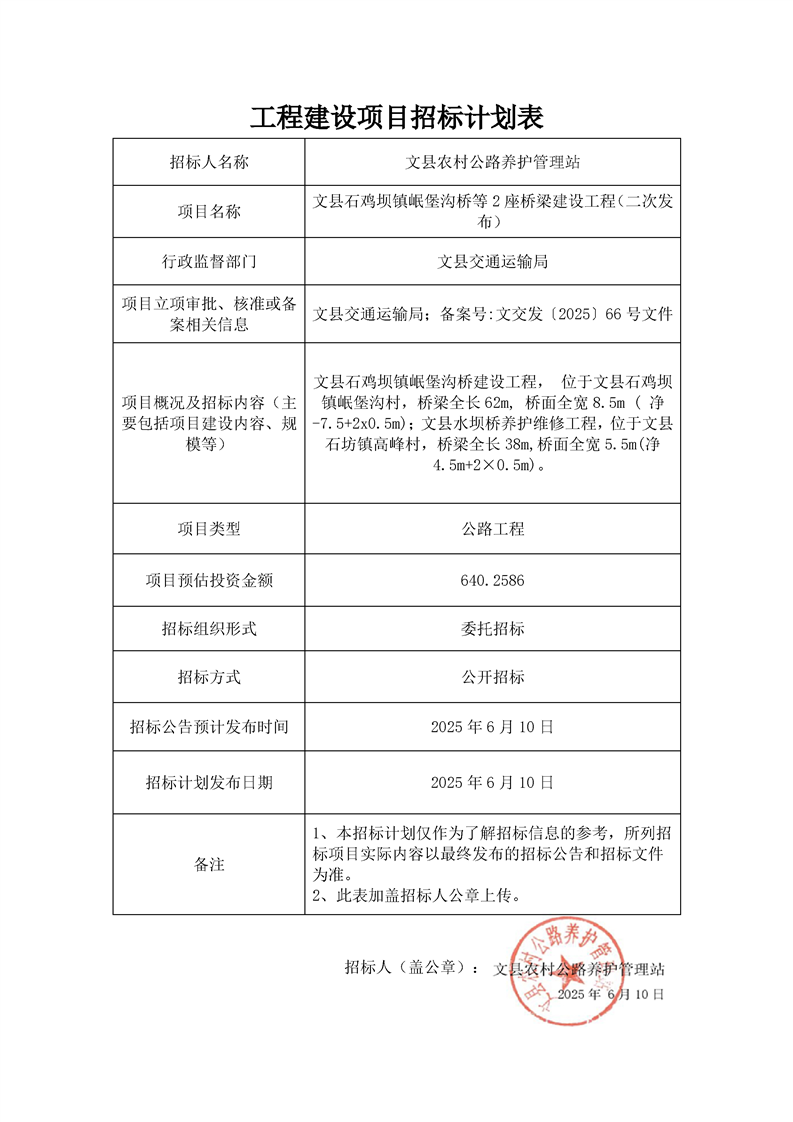 文縣石雞壩鎮(zhèn)岷堡溝橋等2座橋梁建設工程(二次發(fā)布)