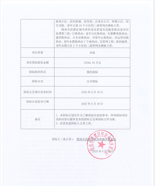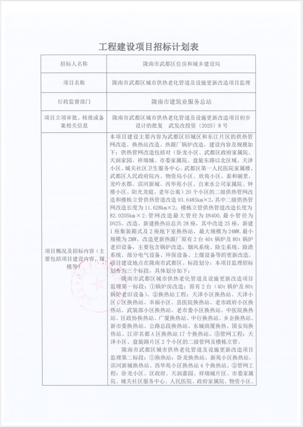 隴南市武都區(qū)城市供熱老化管道及設施更新改造項目監(jiān)理