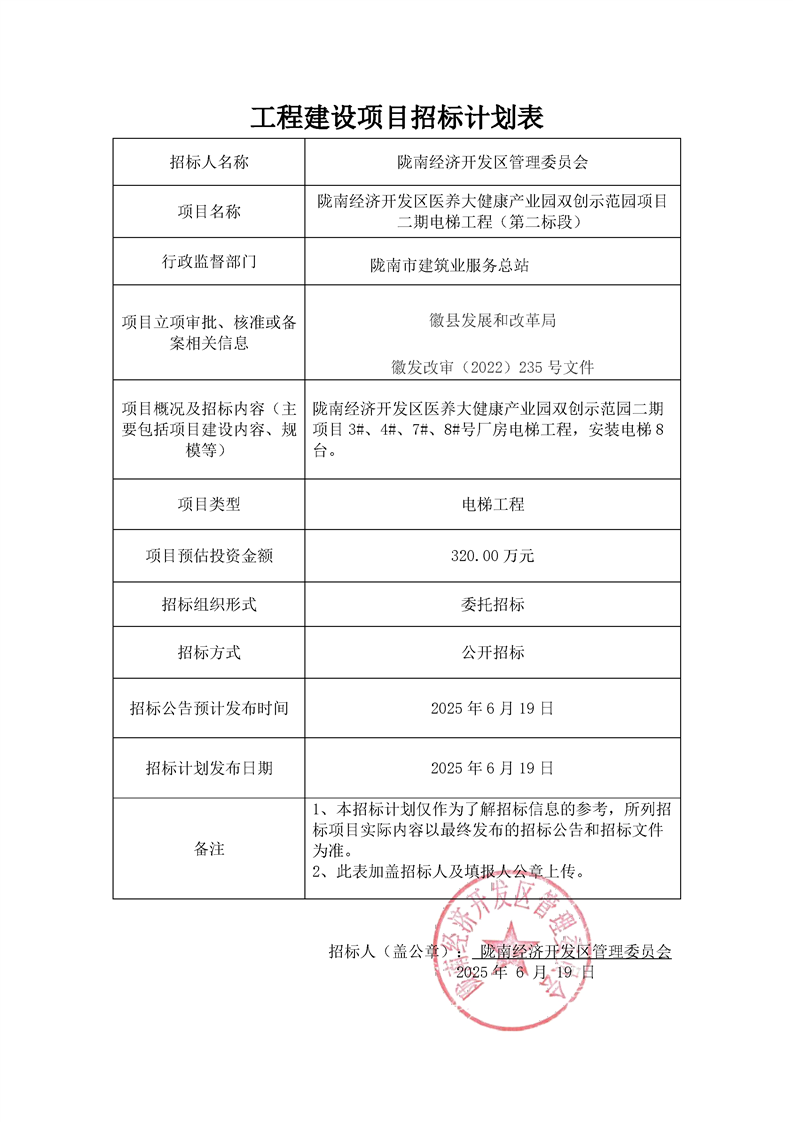 隴南經(jīng)濟(jì)開發(fā)區(qū)醫(yī)養(yǎng)大健康產(chǎn)業(yè)園雙創(chuàng)示范園項目二期電梯工程(第二標(biāo)段)