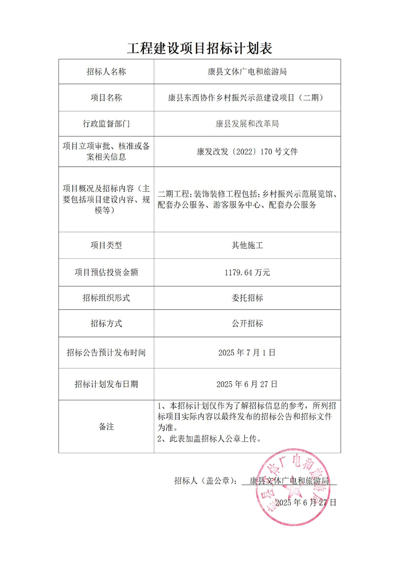 康縣東西協作鄉村振興示范建設項目(二期)