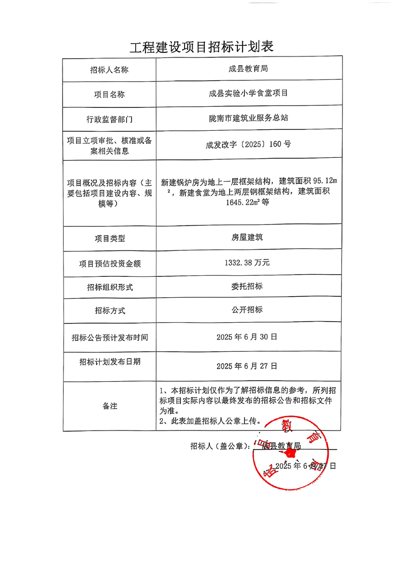 成縣實驗小學食堂項目招標計劃.pdf