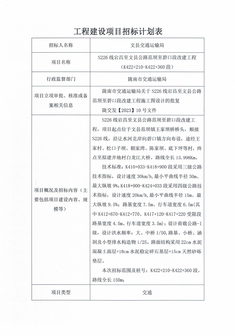 S226線宕昌至文縣公路范壩至碧口段改建工程(K422+210-K422+360段)