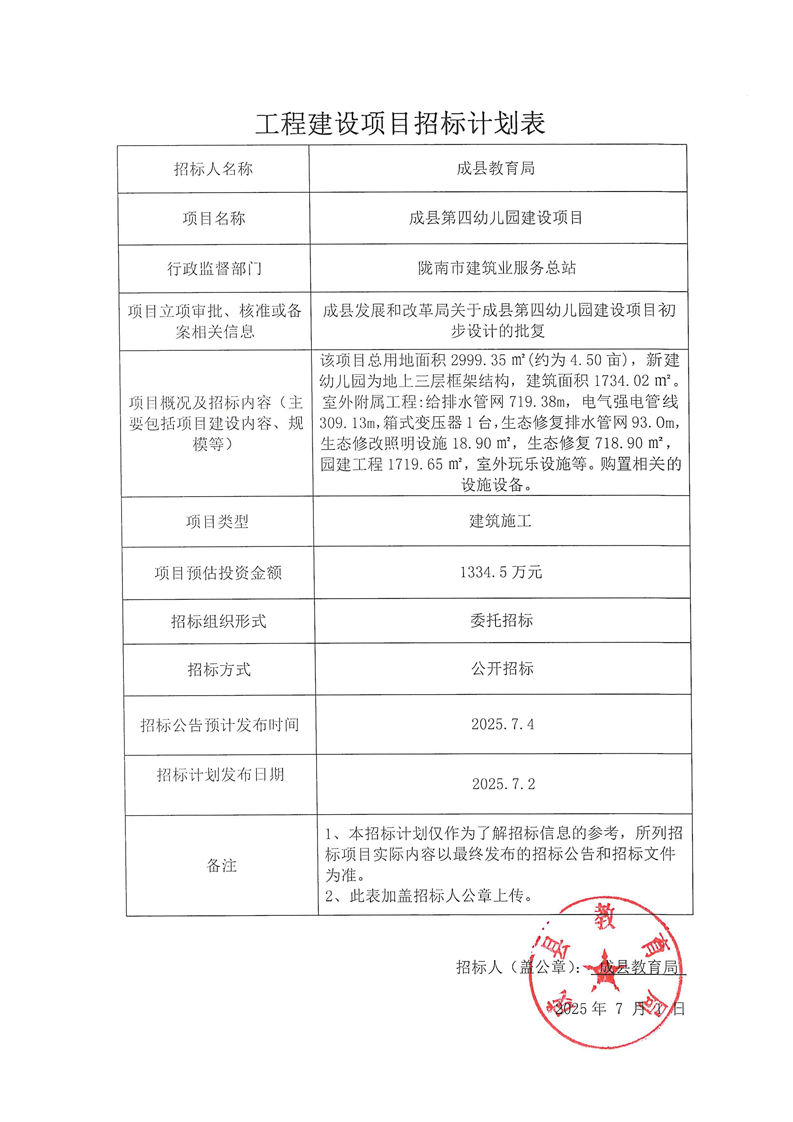 成縣第四幼兒園建設項目