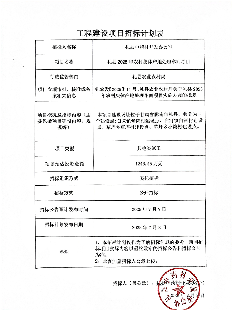 禮縣2025年農(nóng)村集體產(chǎn)地處理車間項(xiàng)目