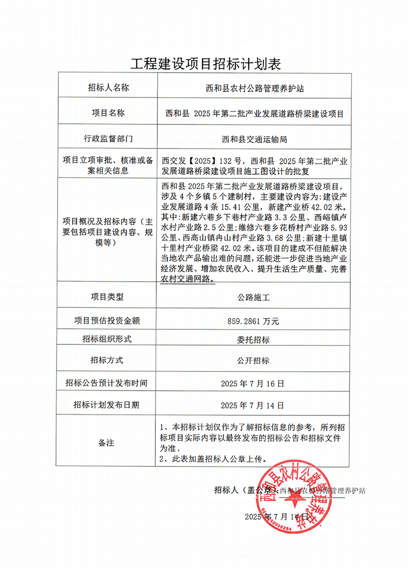 西和縣2025年第二批產業發展道路橋梁建設項目