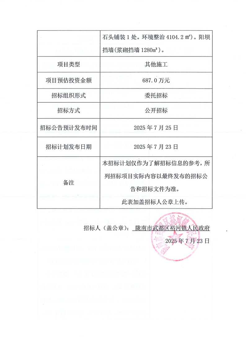隴南市武都區裕河鎮趙錢壩村、孫家灣村、陽壩村基礎設施水毀修復項目