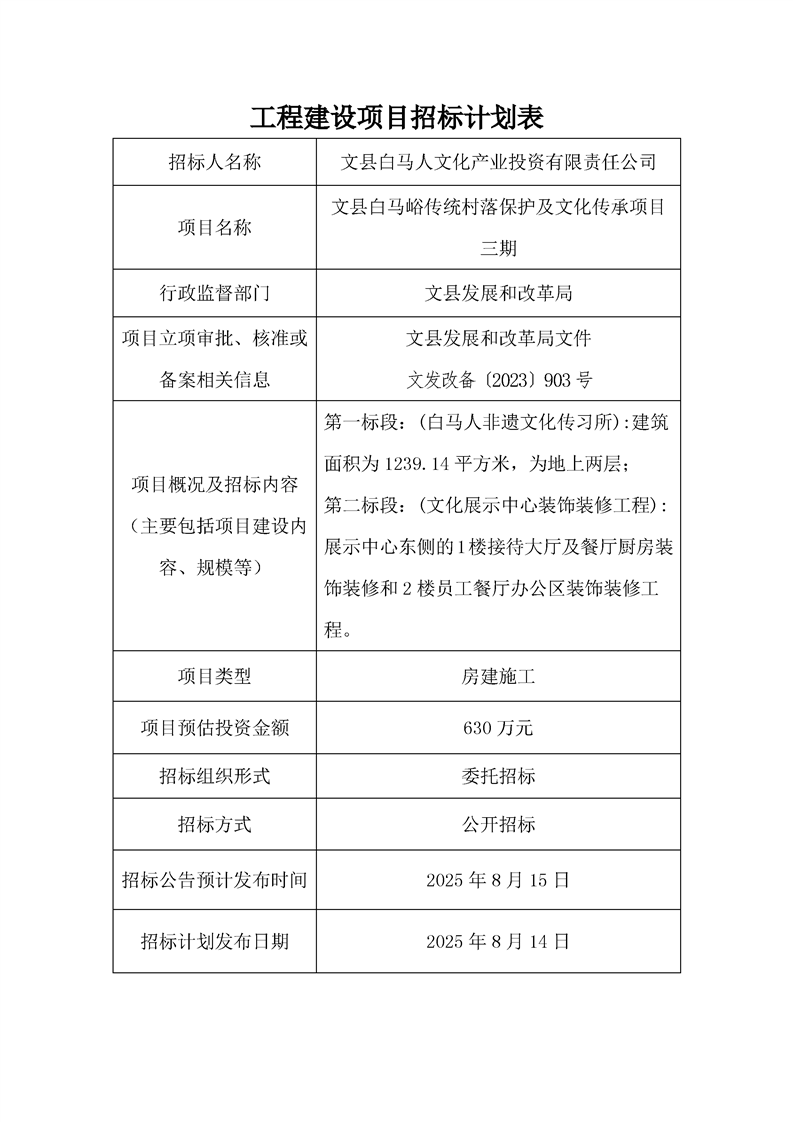 文縣白馬峪傳統村落保護及文化傳承項目三期