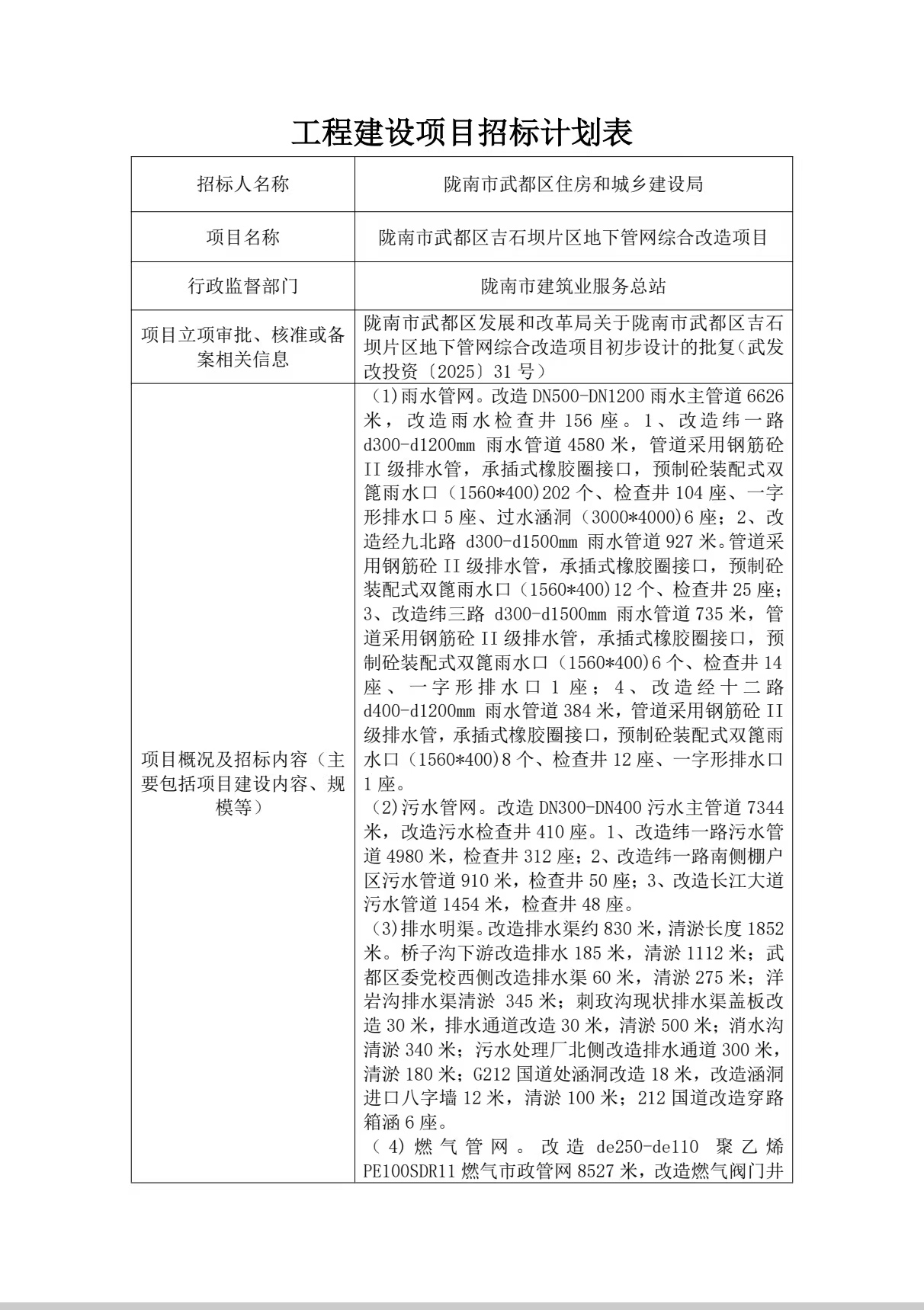 隴南市武都區吉石壩片區地下管網綜合改造項目