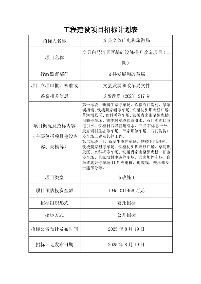文縣白馬河景區基礎設施提升改造項目(二期)