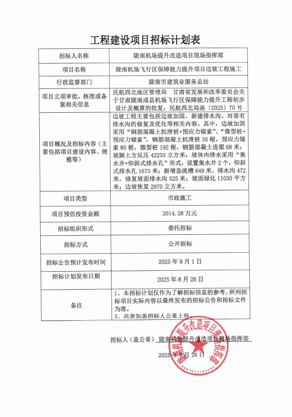隴南機場飛行區(qū)保障能力提升項目邊坡工程施工