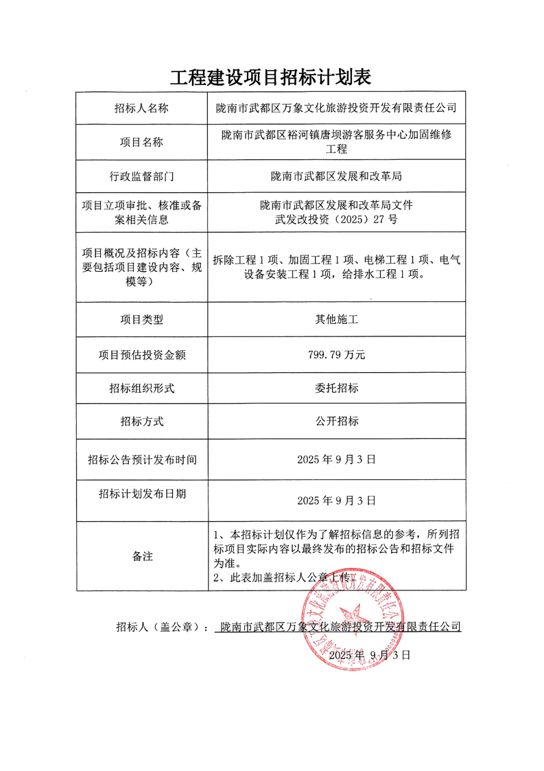 隴南市武都區裕河鎮唐壩游客服務中心加固維修工程