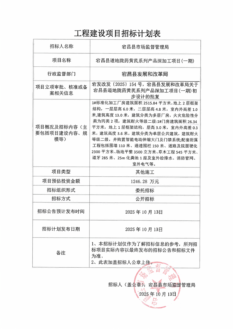 宕昌縣道地隴藥黃芪系列產(chǎn)品深加工項(xiàng)目(一期)