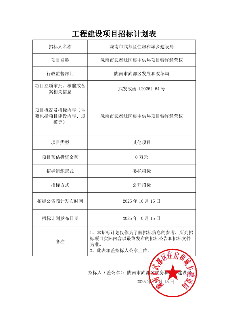 隴南市武都城區(qū)集中供熱項目特許經營權