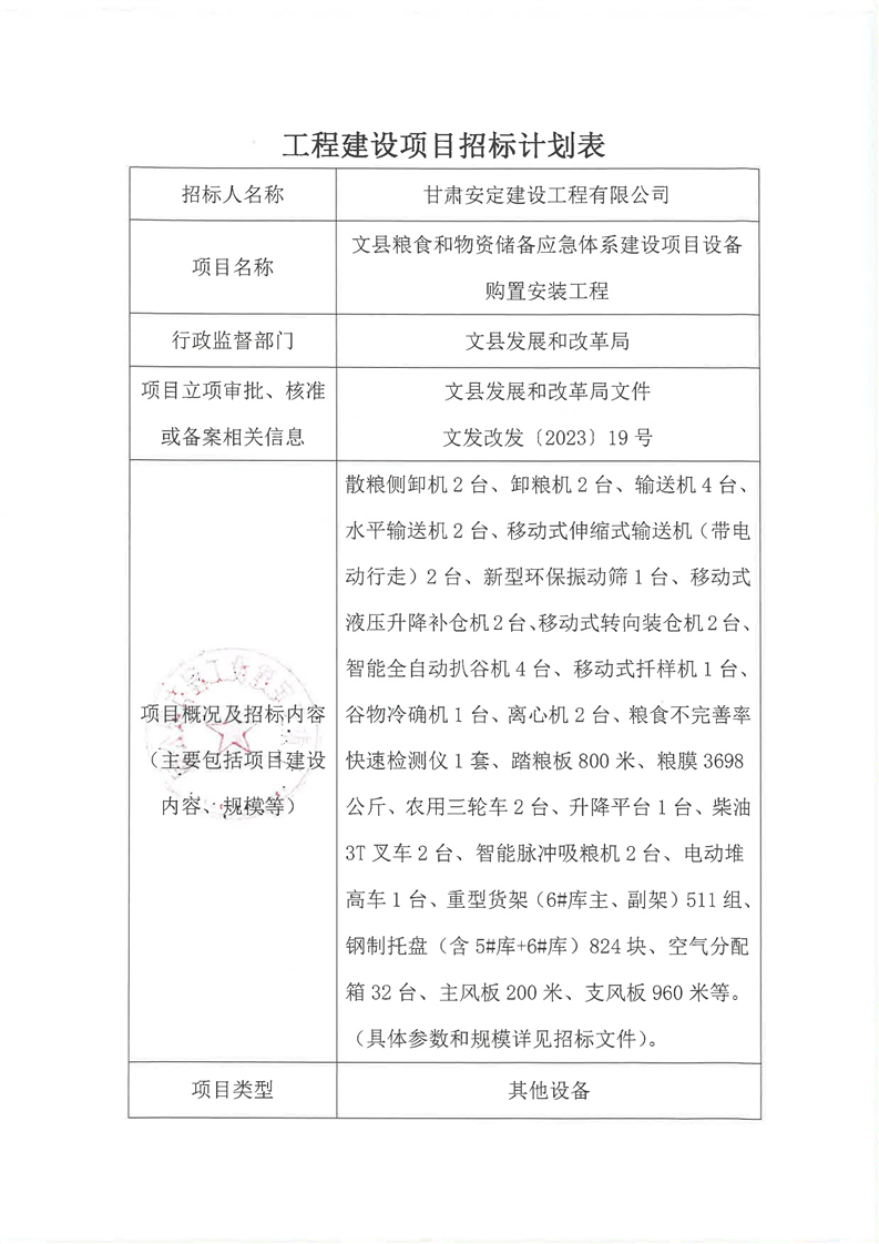 文縣糧食和物資儲備應(yīng)急體系建設(shè)項目設(shè)備購置安裝工程