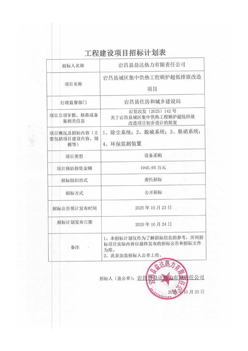 宕昌縣城區集中供熱工程鍋爐超低排放改造項目