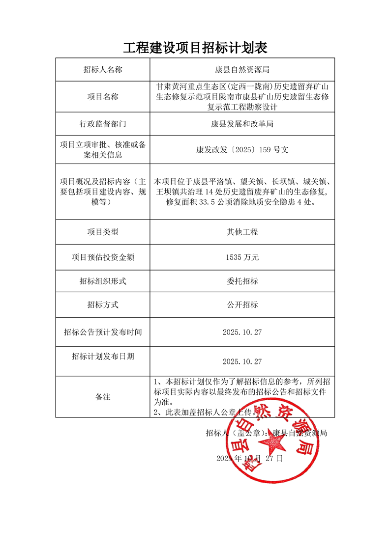 甘肅黃河重點生態區(定西一隴南)歷史遺留棄礦山生態修復示范項目隴南市康縣礦山歷史遺留生態修復示范工程勘察設計