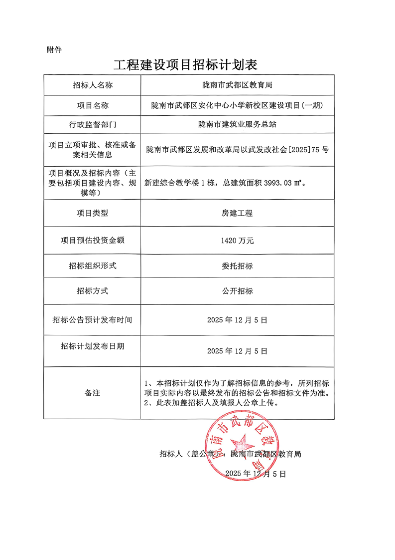 隴南市武都區安化中心小學新校區建設項目(一期)