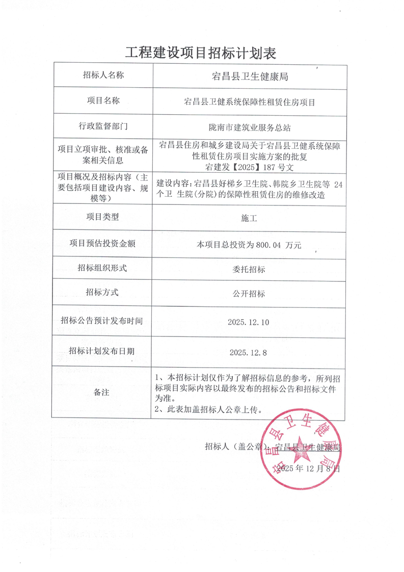 宕昌縣衛健系統保障性租賃住房項目