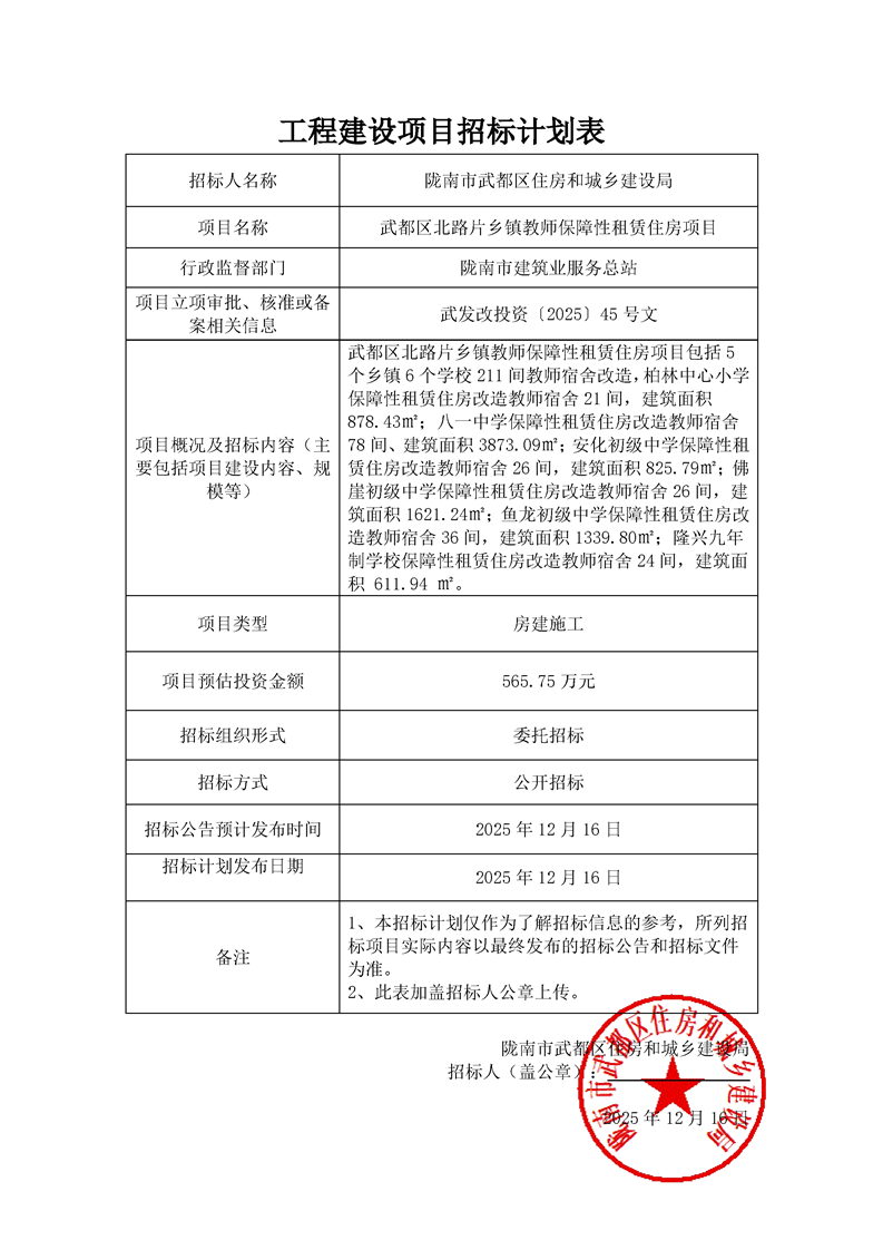 武都區西路片鄉鎮教師保障性租賃住房項目