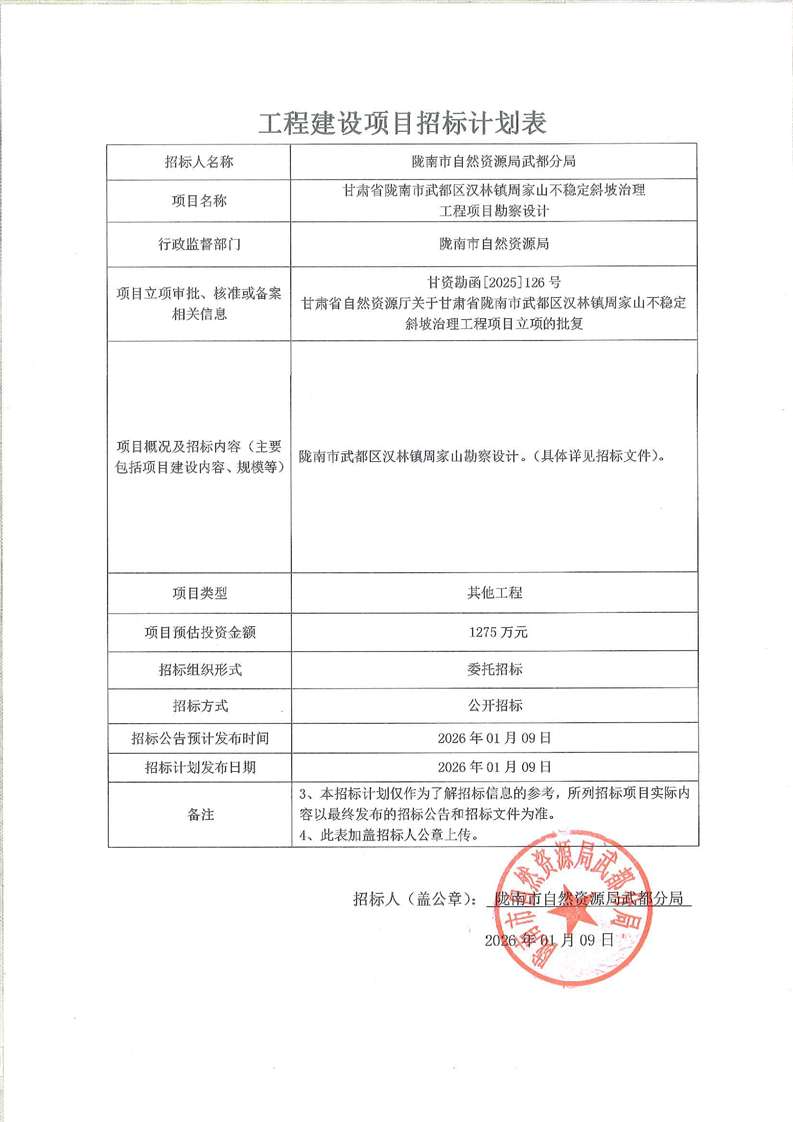 隴南市武都區漢林鎮周家山不穩定斜坡治理工程勘察設計