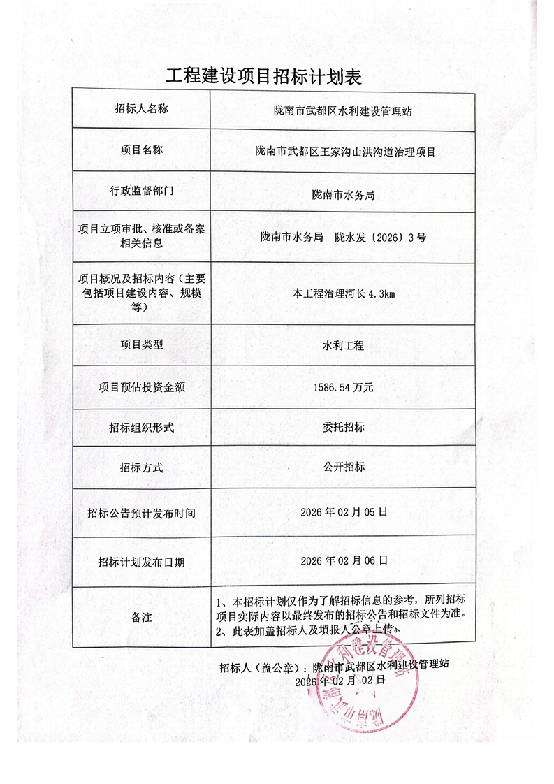 隴南市武都區(qū)王家溝山洪溝道治理項(xiàng)目