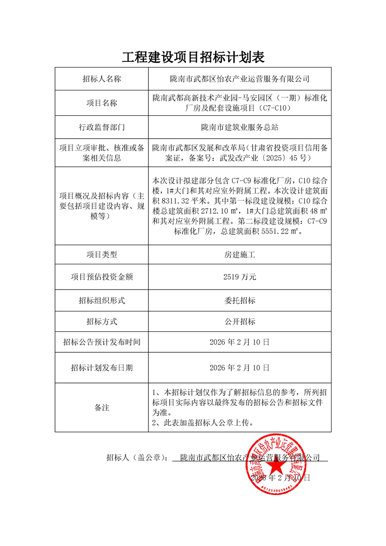 施工招標計劃表—隴南武都高新技術產業園-馬安園區(一期)標準化廠房及配套設施項目(C7-C10).pdf