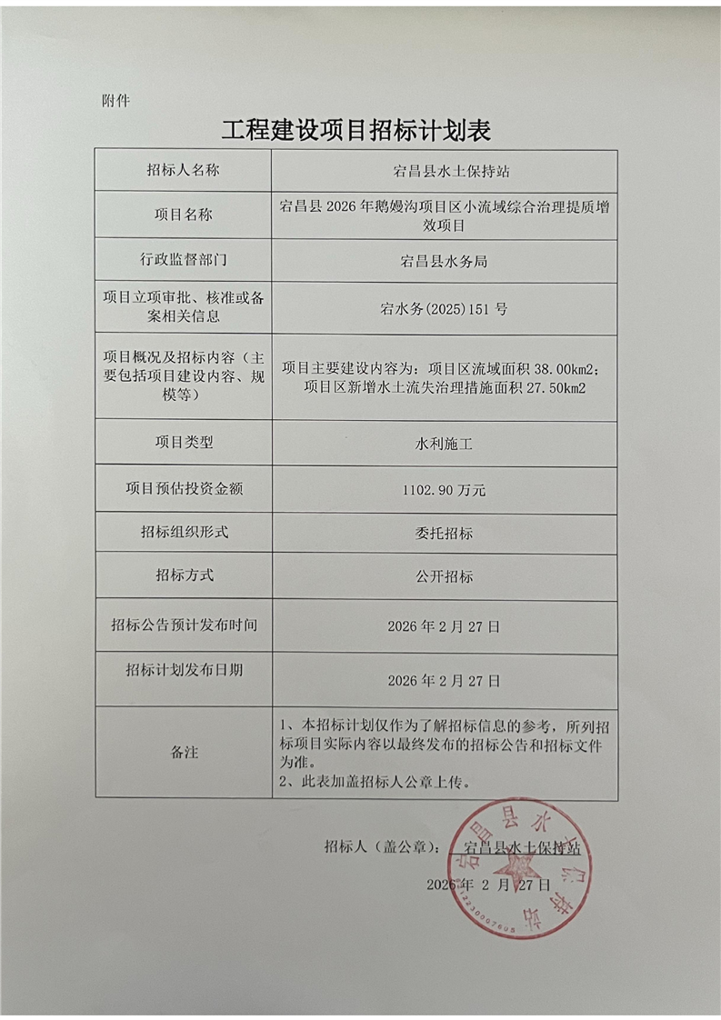 宕昌縣2026年鵝嫚溝項目區(qū)小流域綜合治理提質增效項目