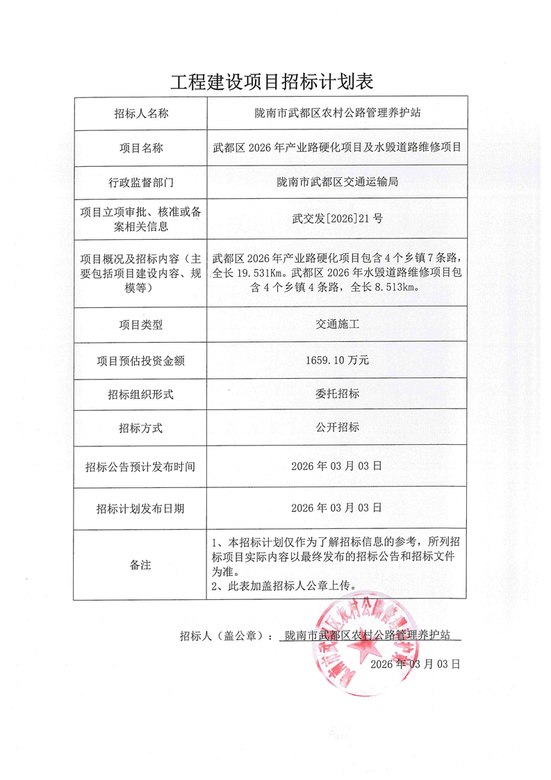 武都區2026年產業路硬化項目及水毀道路維修項目