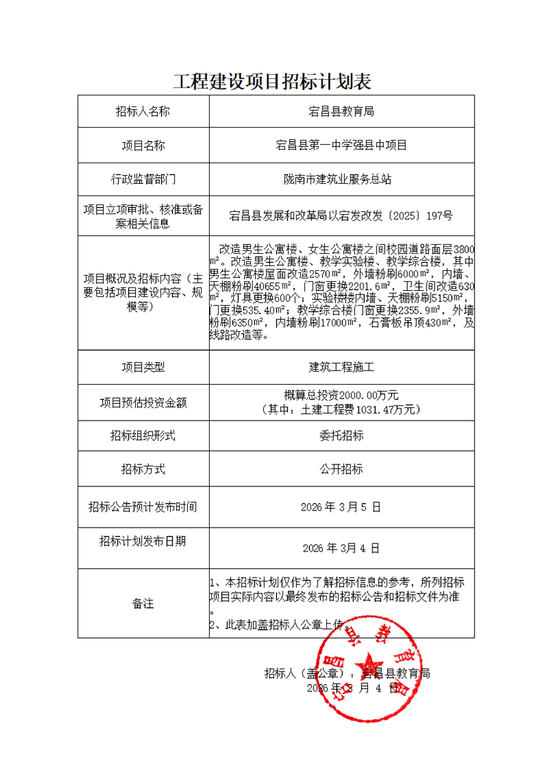 宕昌縣第一中學強縣中項目